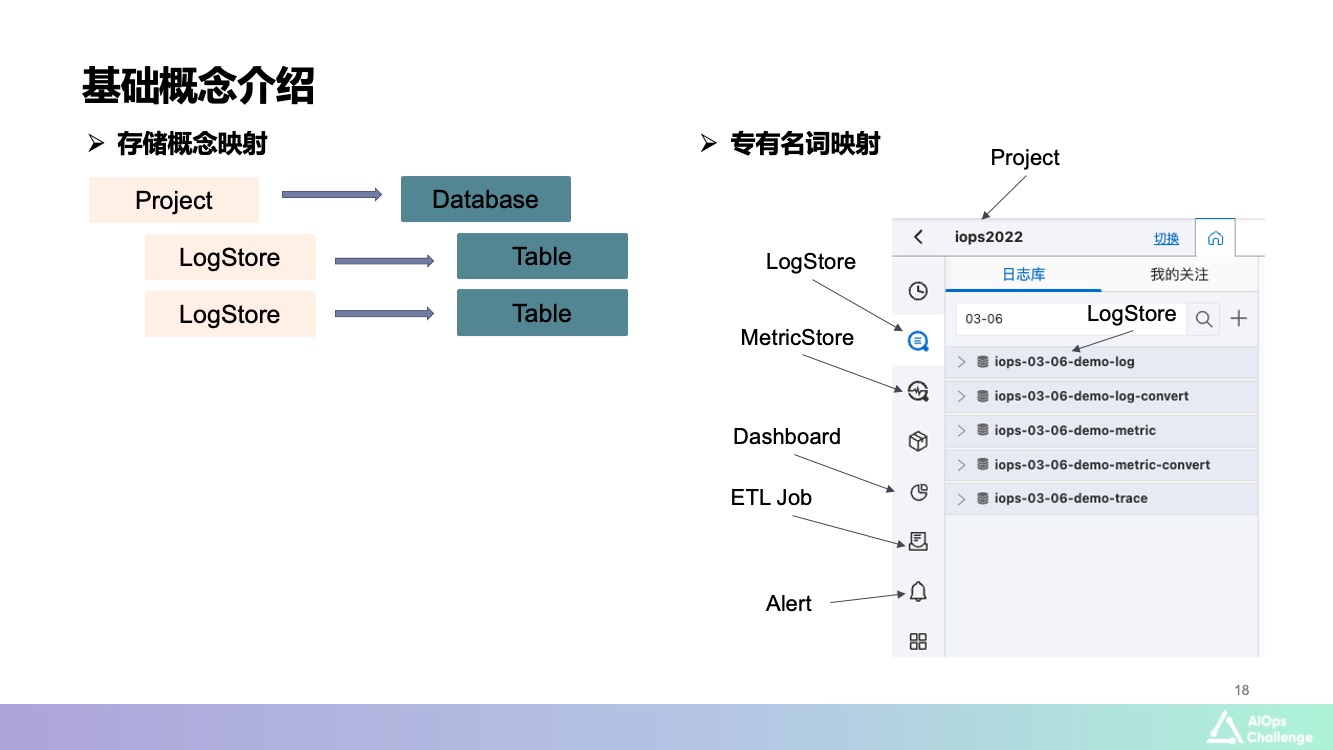 在SLS平台,我们以Project为准来存数据,更多对应的是Database的一个形态。在Project下有LogStore能力,对应Database里的Table。对此,我们提供专有名词解析,便于更好理解平台中名词所对应的结构。